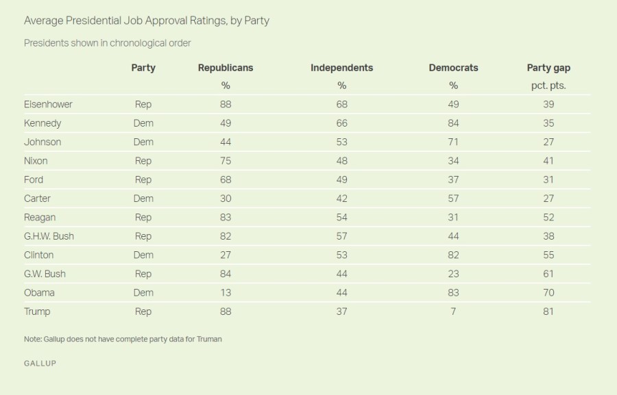 [19] Jeffrey M. Jones, Last Trump Job Approval 34%; Average Is Record-Low 41%, (Gallup, 2021)